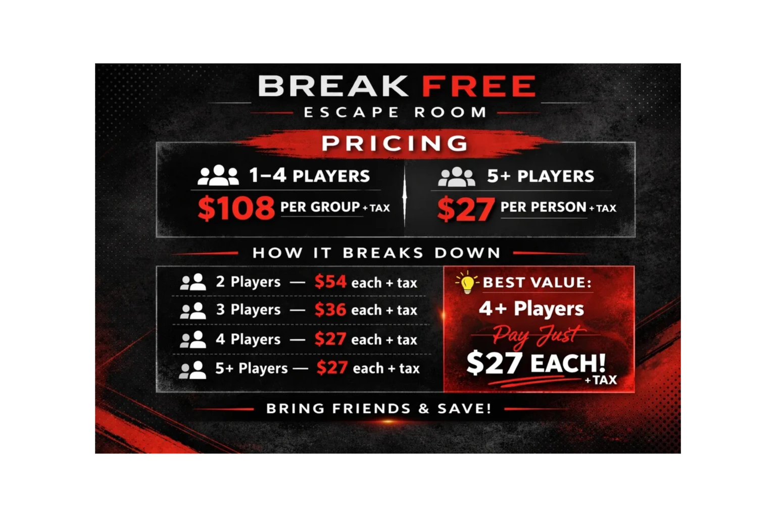 💡 Tip: Once you reach 4 players, the price is the same per person as larger groups
